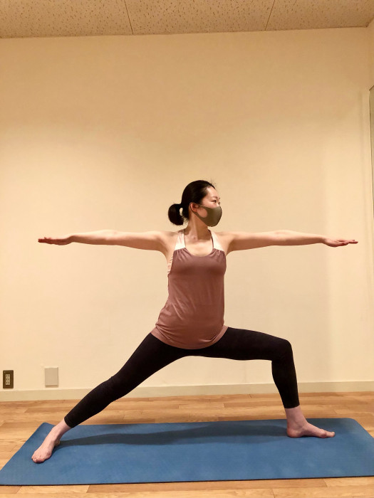 深い呼吸を意識して、筋肉を伸ばすと気持ちも身体もリラックスできるようになり、自律神経のバランスが整ってきます。様々なヨガのポーズの中でも、心身の安定感、気分が前向きになるポーズが「戦士のポーズ2」