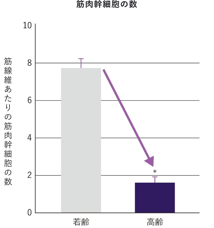 筋肉幹細胞は加齢に伴い数が減少し、機能も低下することがわかっています。