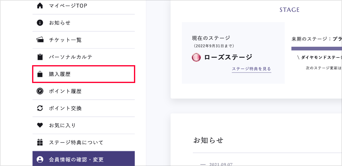 ご購入履歴についてはマイページの「購入履歴」でご確認いただけます。