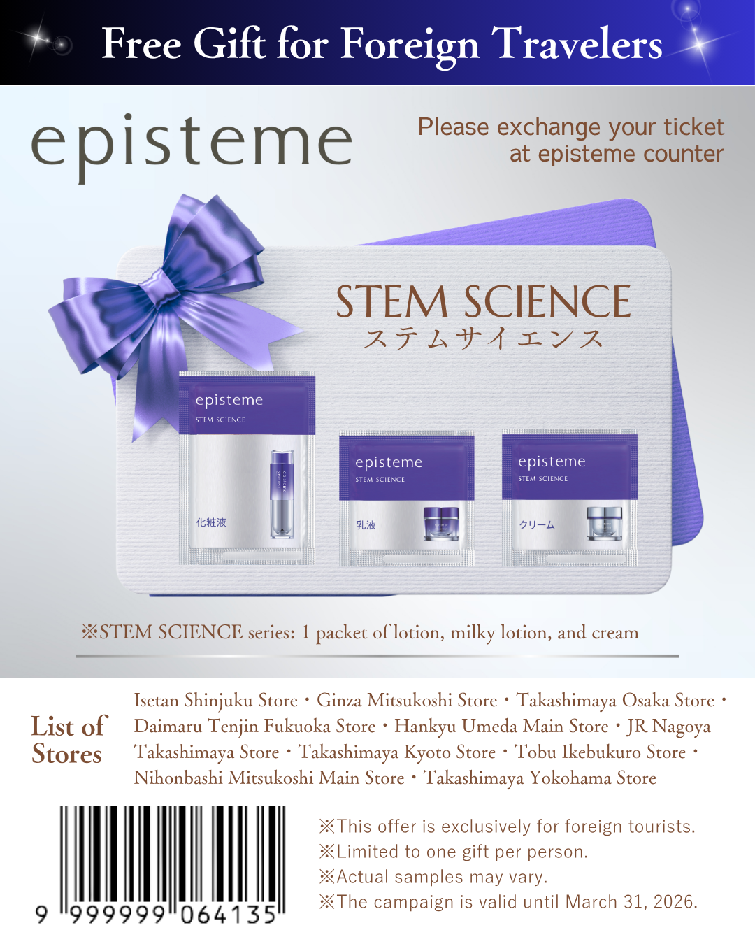 Main Building Floor 1, Cosmetics Section “episteme/Obagi”TEL:03-6665-0551